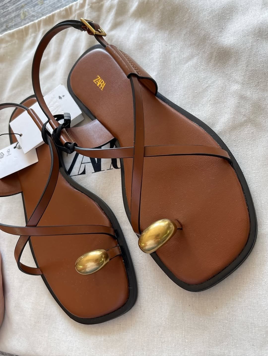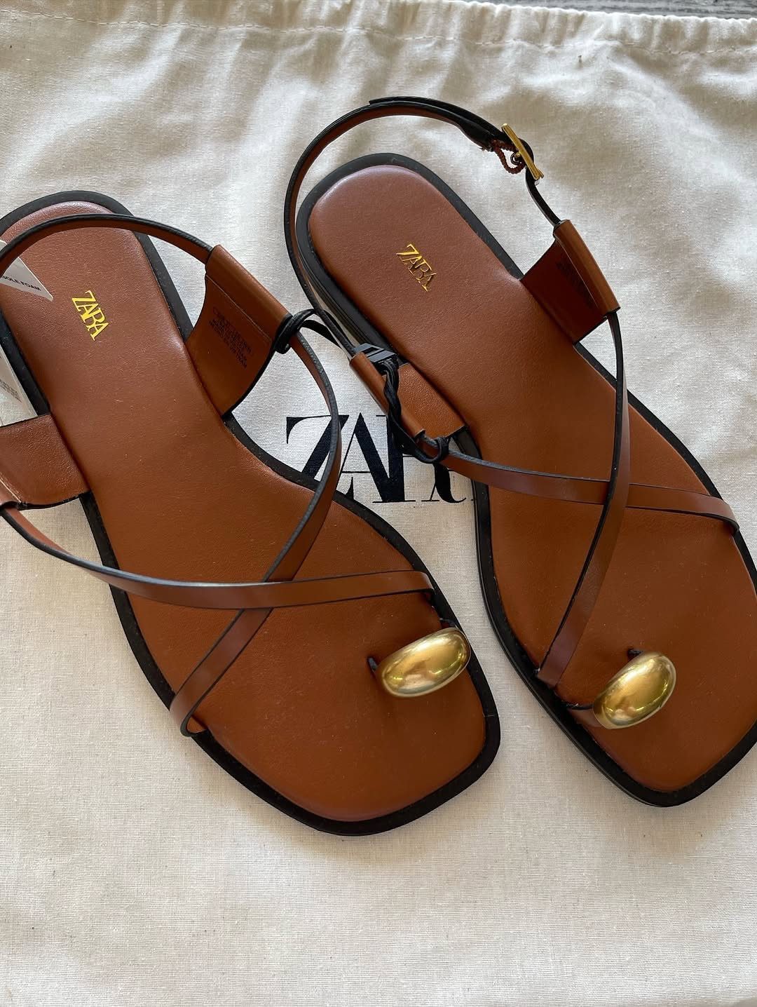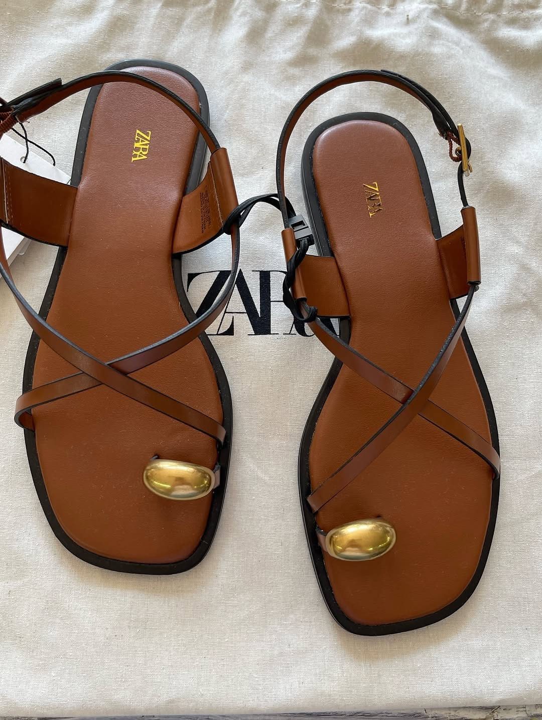 Brown slide with golden buckle