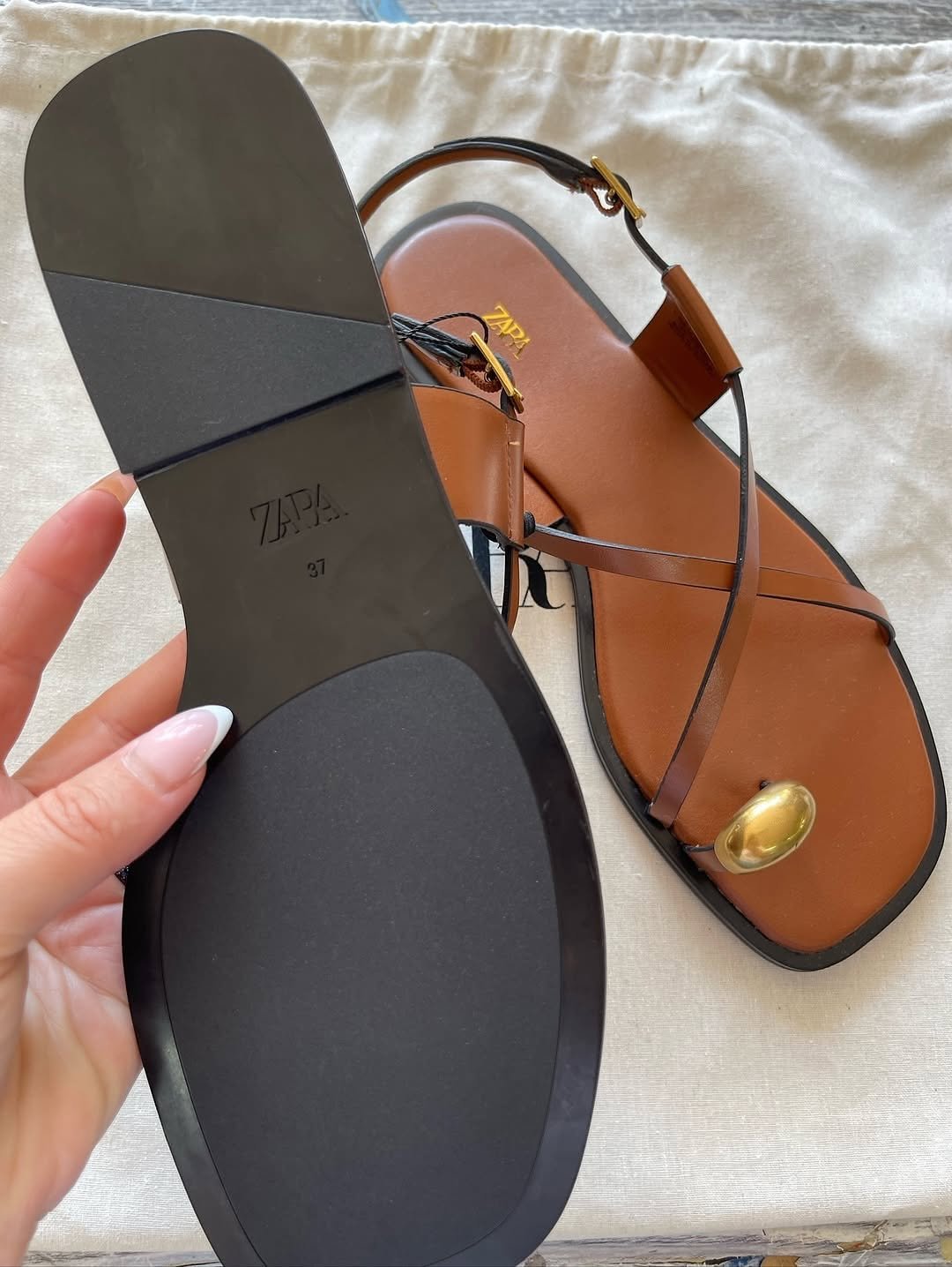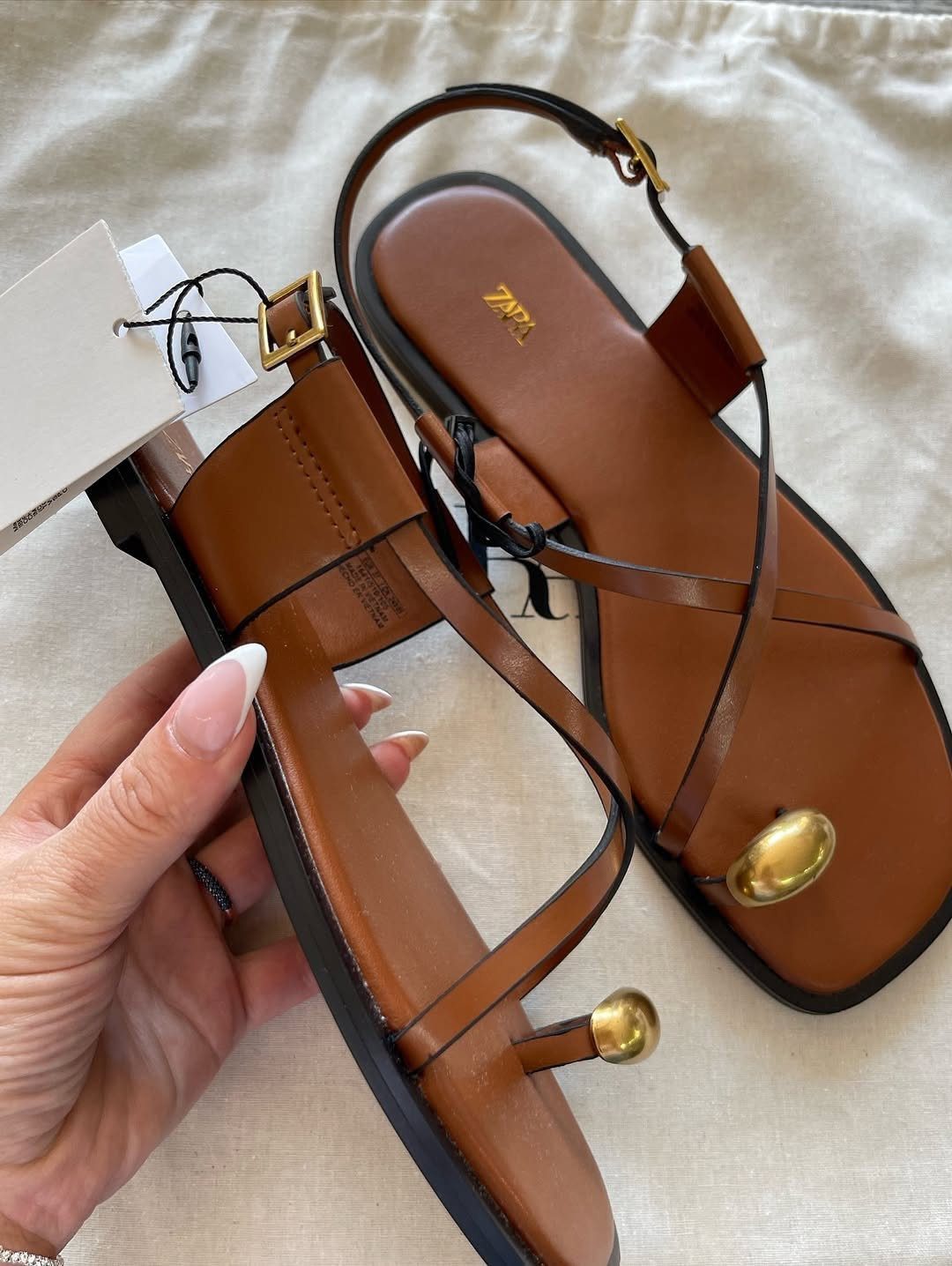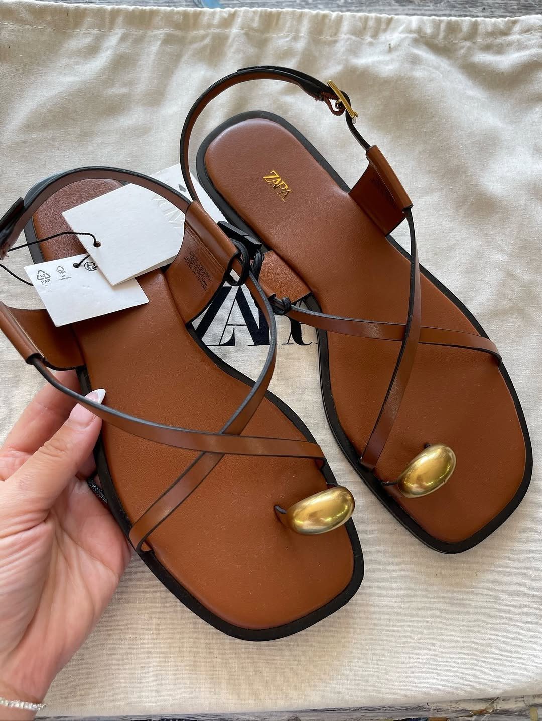 Brown slide with golden buckle