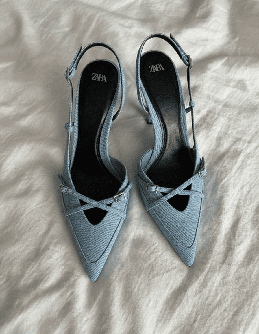 Comfortable heels with a fashionable denim texture. Totally worth it