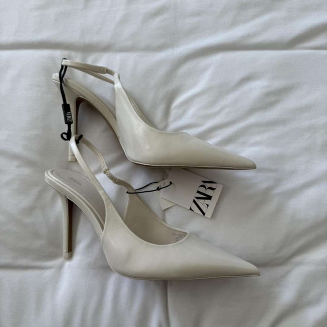 Stiletto heel. Pointed toe. Elasticated slingback strap.